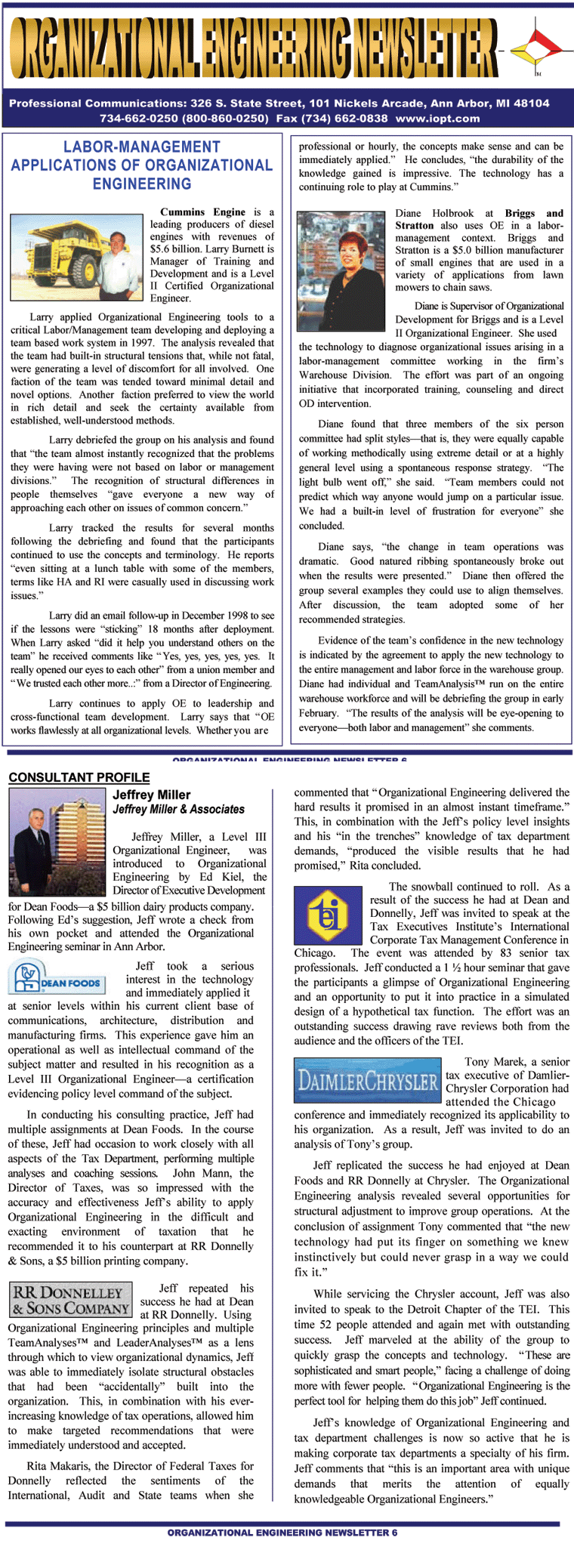 Experienced Organizational Engineers have repeatedly reported that knowledge gained from even a single "I Opt" exposure continues to benefit both the individual and the organization of which he/she is a part over long periods. (Read Larry Burnetts newsletter where Larry reported his results.)